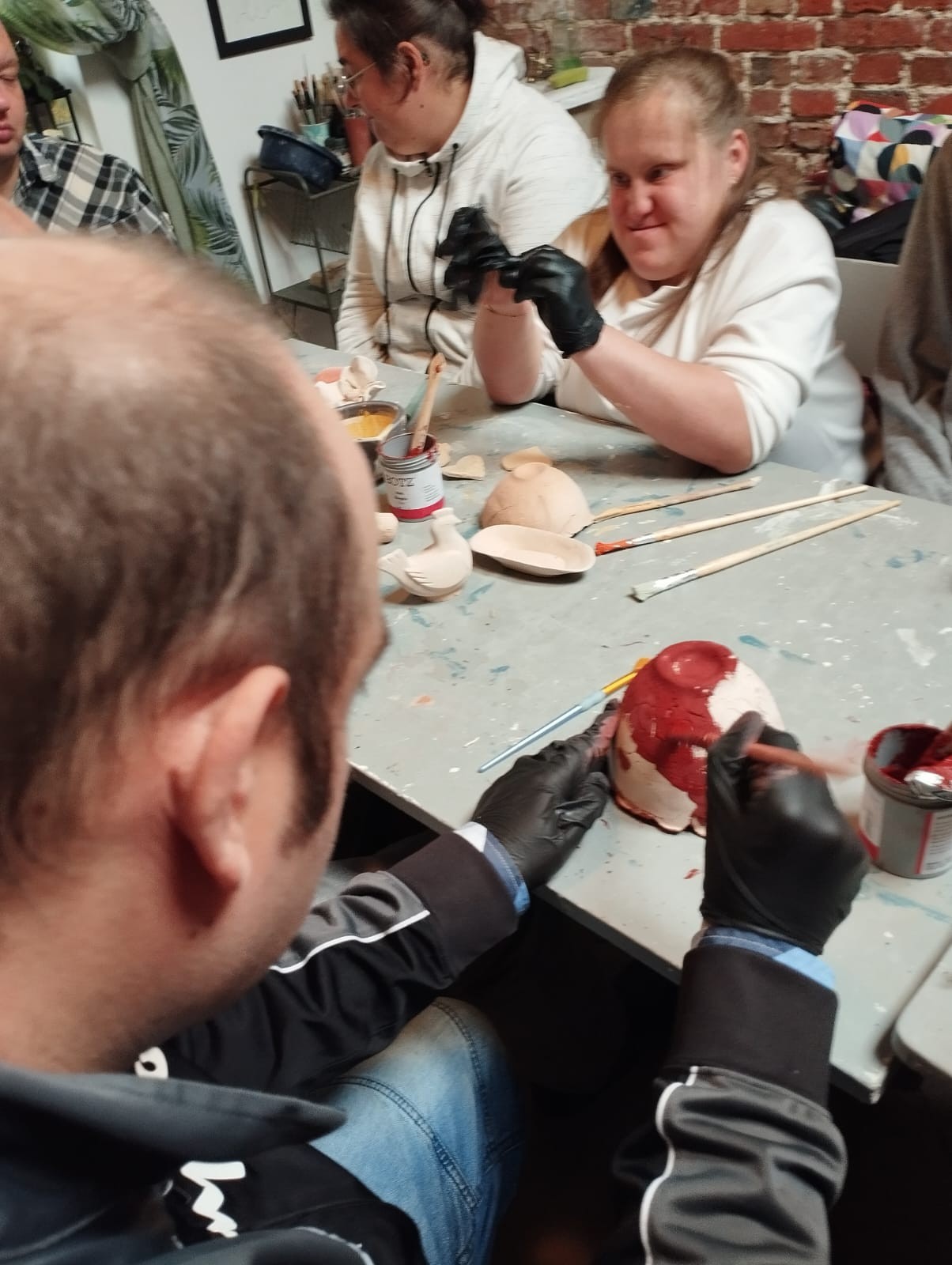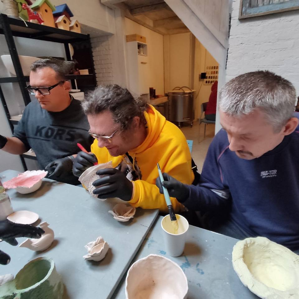 Dziś w ramach projektu „Bursztynowym Szlakiem” II grupa uczestników wzięła udział w kolejnym z etapów warsztatów z ceramiki pt. ” Szkliwienie i zdobienie ceramiki „.